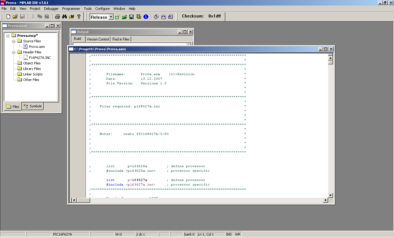 .hex da poter scaricare sul PIC.