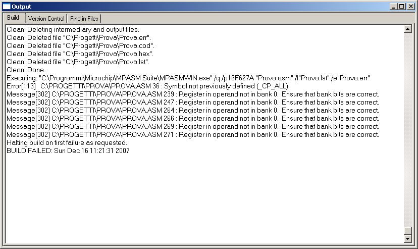 Corretti gli errori di configurazione eseguire di nuovo l'operazione di build.