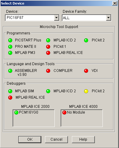 è stato scelto il PIC16F87). Dopo aver premuto il pulsante OK si