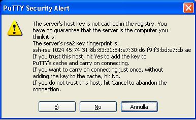 | Accesso tramite Putty