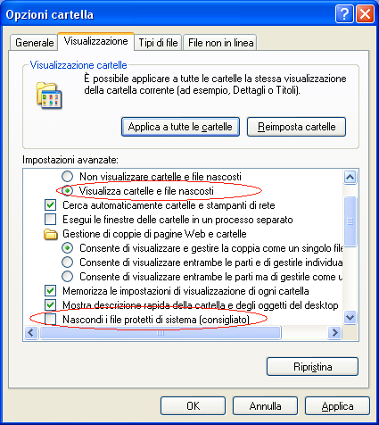 Nascondi i file protetti di sistema