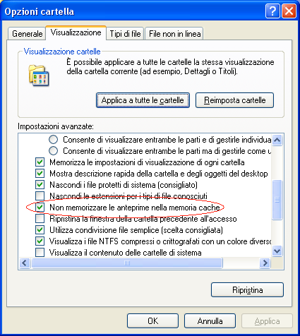 • Cercare e selezionare la voce che dice: Non memorizzare le anteprime nella memoria cache
